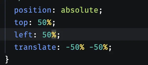 La propriété translate permet de définir un déplacement pour notre élément sur les axes x et y. Soit avec des valeurs absolues (px, cm, etc.) ou des valeurs relatives (em, %, etc.). Ce qui est intéressant c'est que l'unité de pourcentage ne réprésente plus la largeur ou la hauteur du parent, mais la taille de notre particule. Autrement dit, la solution à notre problème est d'ajouter translate: -50% -50%;
