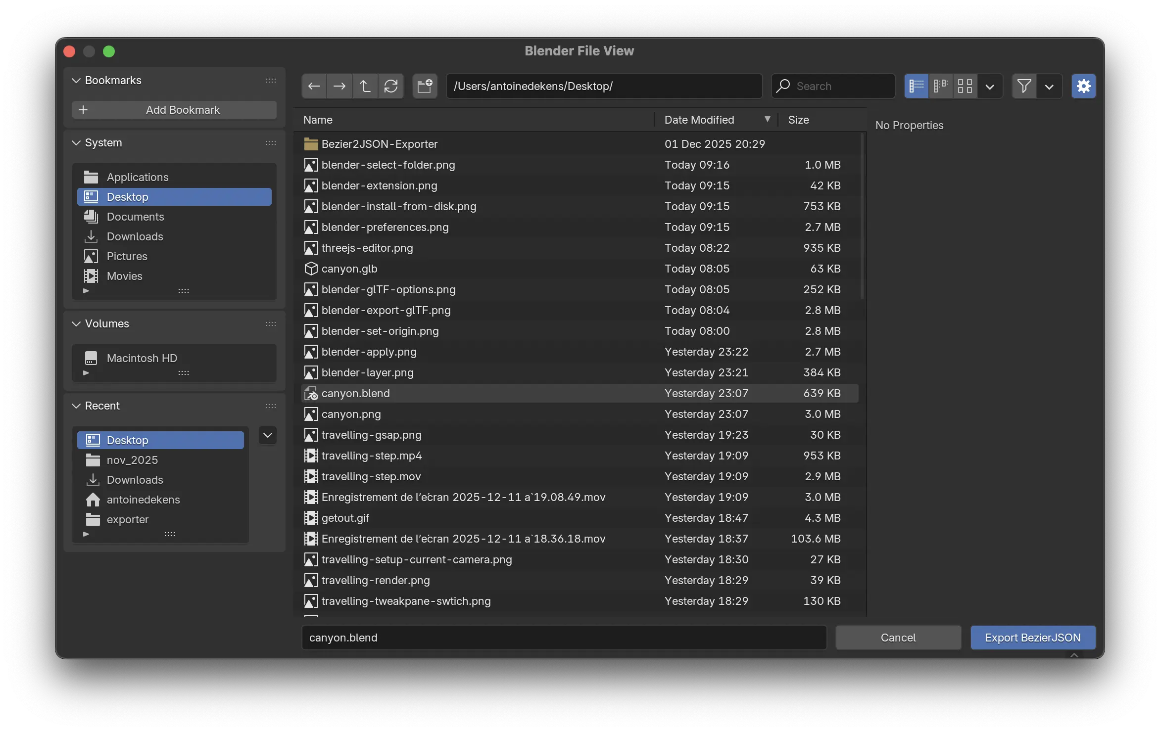 Grâce à cette extension, nous pouvons maintenant exporter les données de notre courbe au format JSON. Depuis l'onglet File > Export > Export Bezier2JSON.