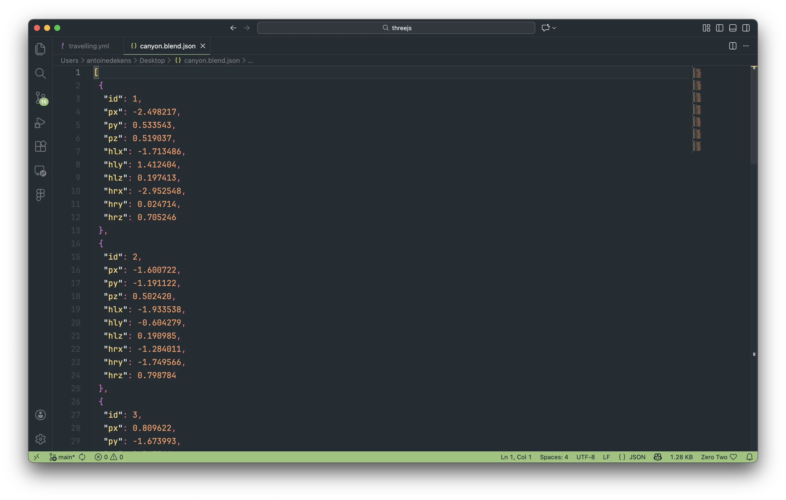 On obtient un .json contenant un tableau de point représentant chaque point d'ancrage et leurs 2 points de contrôle.