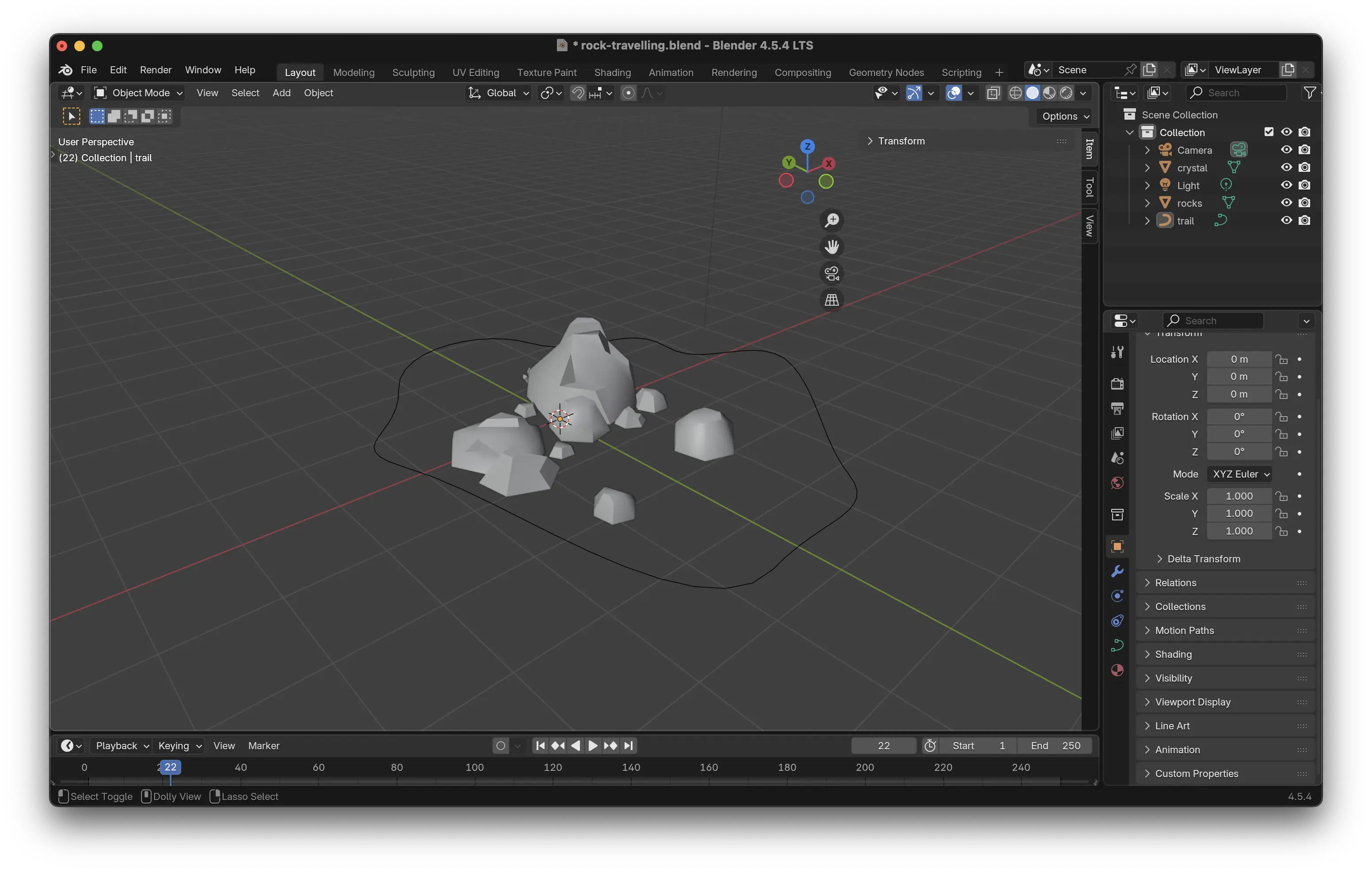 Il sera quand même plus simple d'importer une courbe réalisée directement dans Blender que de la coder à la main. Dans un premier temps nous allons partir d'un exemple contenant une scène type :